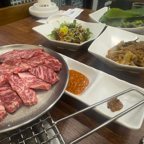 꽃 갈비살 이름답게 이쁜 마블링과 적당한 고기양이 테이블로 도착을 하였다.