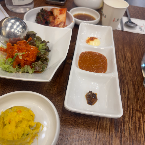 반찬이 많지는 않지만  맛난 녀석들이었고, 깔끔하게 세팅되었다.  그리고 쌈장옆에 있는 녀석은 표고고추냉이? 내가 잘못 들었을지도 모르지만 특이한 맛이었는데. 너무 양이 적어서  이걸 왜 주나 싶었다.
