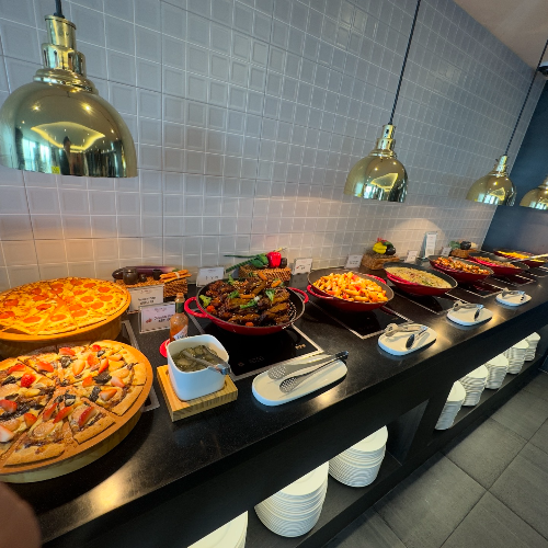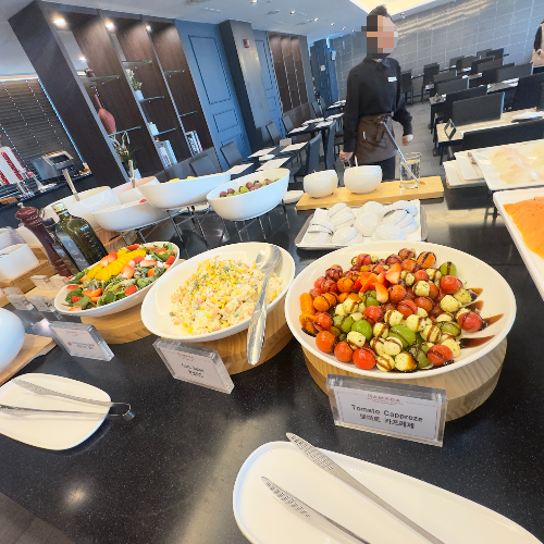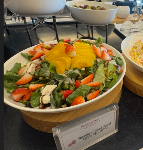 샐러드바. 훈제 연어까지 있어서 먹을 게 많은데. 옆에 한식 코너도 있다.