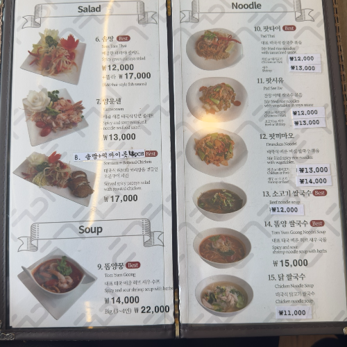 2인세트 메뉴 + 똠양국수 이렇게 주문을 하고 메뉴판을 모두 살펴보았다. ㅋㅋ