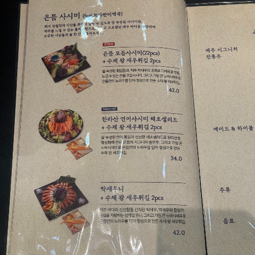 레스토랑 홍보를 조금더 많이 하셨으면 하는 아쉬움은 있었지만 잘 찾았으니 다행.. 입구에 표시가 되어 있었다. 딱새우니 메뉴 ㅎㅎㅎ. 운이 좋으면 딱새우를 먹을 수 있겠구나 하는 기쁜 마음으로 입장.