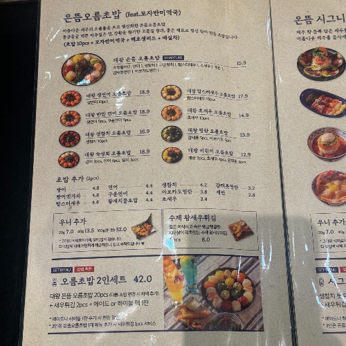 이 집은 초밥이 유명하다고 하여 대왕은 뜸오름초밥을 시켜 간단하게 배를 채우고, 본격적으로 술과 안주를 시켰다.