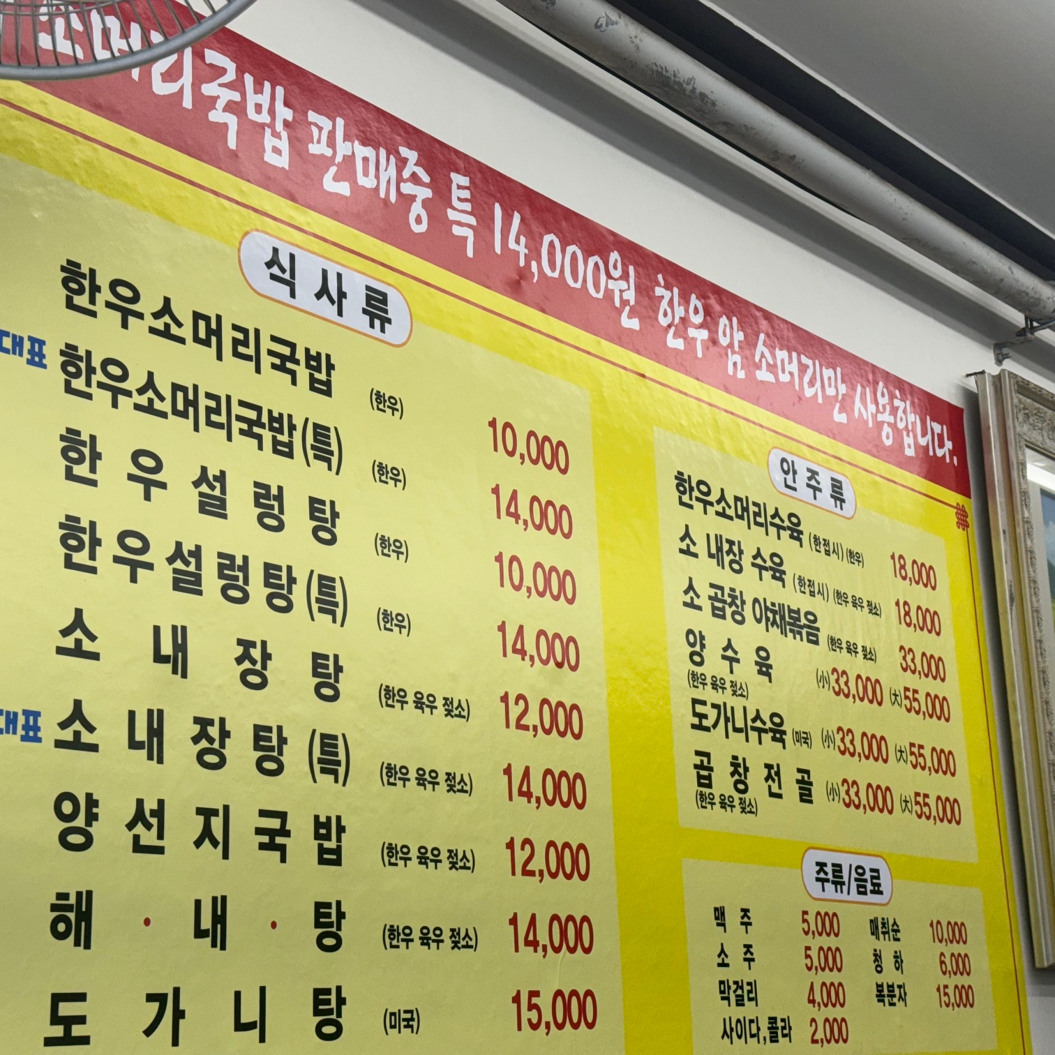미팅 파트너가 한우소머리국밥하고 소내장탕이 대표 메뉴라고 추천을 해주셨다.