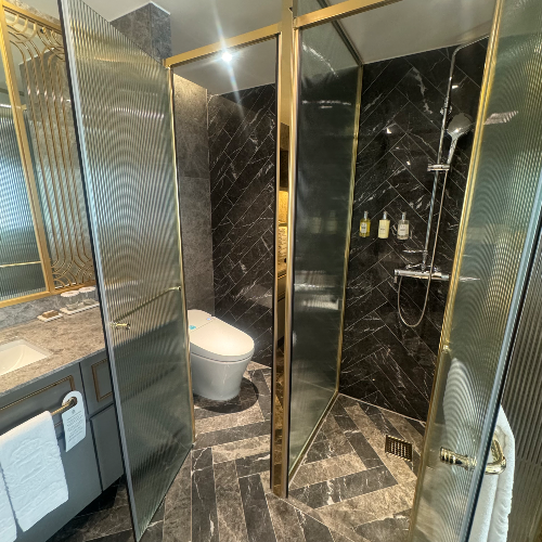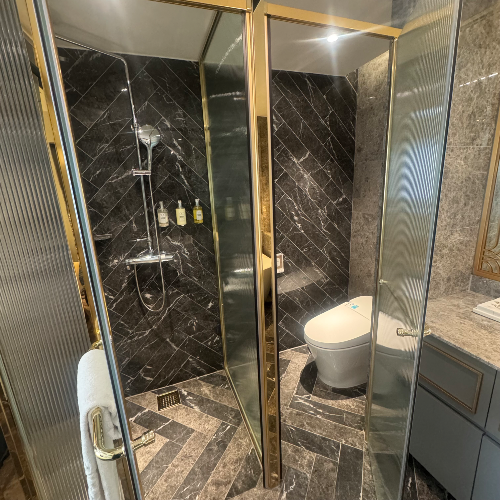 욕실이 크면 정말 고급스워운 느낌이 나는데 이곳은 금색으로 포인트가 되어 있어서 인지 더 고급스럽게 보였다.
