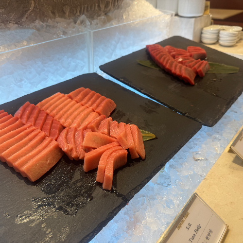 모처럼의 호캉스인데 호텔 뷔페가 빠질 수 없다는 생각에 큰마음먹고 뷔페를 예약했다. 구성원이 많다 보니 저녁 뷔페가격이 장난이 아니다.