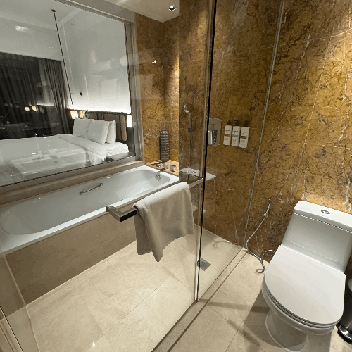 Bathtub 의 크기가 충분 했는데 물받는 속도가 예술... 이런 디테일이 고객의 마을을 사로 잡는다.