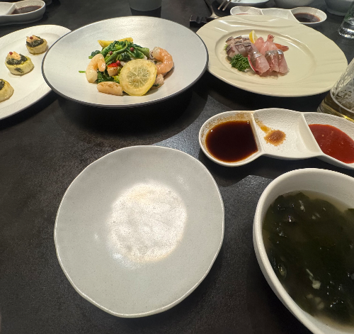 우리는 형제 코스로 주문을 하였고, 회를 시작으로 해산물, 특선요리, 구이, 튀김, 탕, 디저트 등등이 나왔는데