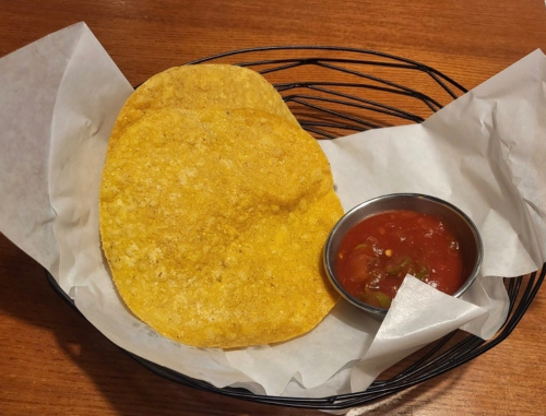 자리에 앉아 간단하게 심심풀이를 주는데 나초와 살사소스가 나오는데 살짝 맵지만 맛있게 맥주와 시작할 수 있다.