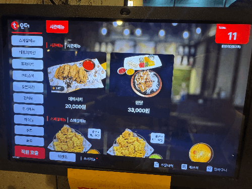 홀썸 치킨을 찾아간 시간은 퇴근하고 교통체증을 뚫고 가다 보니 8시 조금 넘은 시간이었는데 놀랍게도 자리는 2 테이블만 남은 상황이었고 운 좋게 테이블로 안내를 받아 기다리지 않고 앉을 수 있었다. 다른 한자리는 예약 자리라고 싸장님이 안내를 해주셨다.