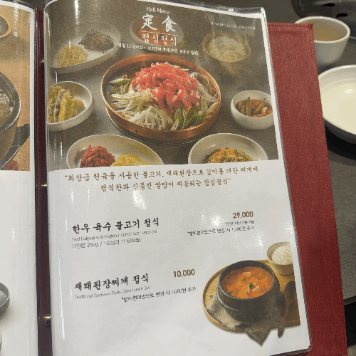 메뉴판에는 먹고 싶은 메뉴들고 가득했다. 특히 맛나 보이는 한우 ~~