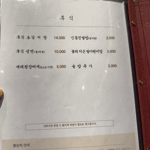 우리가 주문 한것은 통양념갈비 한정식 가격은 인당 4.2 그리고 간단하게 술 한잔 하기로 했다.