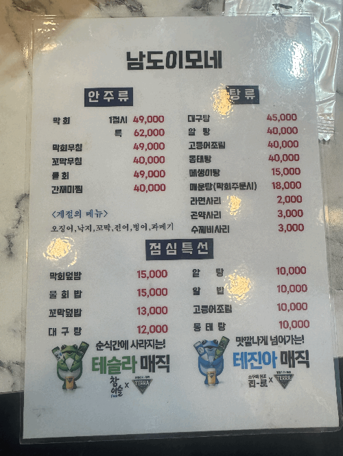 남도이모네는 막회가 메인 메뉴였다. 막회 특이 6.2 면 요즘 회집 치고는 좋은 가격이다.