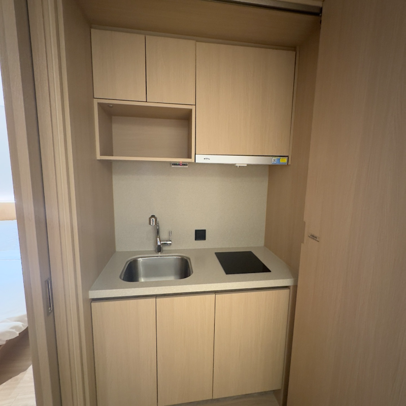 문을 열면 이렇게 숨겨진 키친이 있지만 나는 음식을 해 먹는 스타일이 아니니. 패스