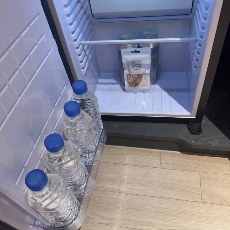 냉장고의 부산라거 맥주와 안주. 웰컴 Gift 정말 마음에 든다.... 지역 특색에 웰컴 기프트라.. 역시 한호리조트 인가?
