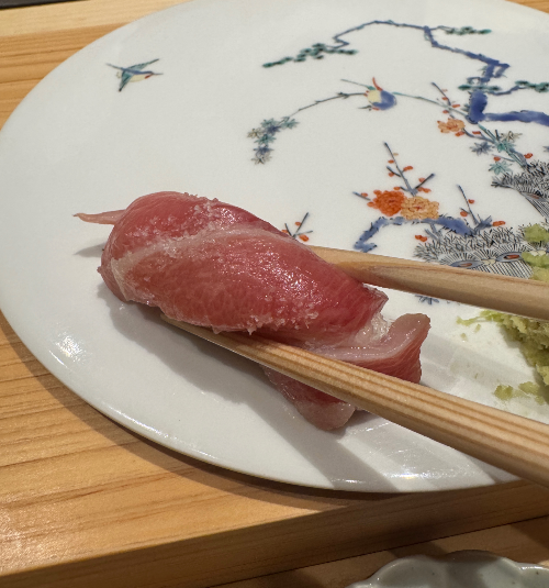 스나즈리로 참치배 쪽 부위로 기름이 많은 부위인데 근막사이의 기름이 고소하고 맛있다고 합니다.