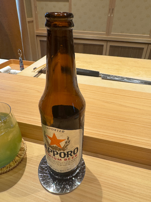 카네사카 신지 셰프의 철학에 의하면 아주 깨끗하게 관리되지 않는 생맥주보다 병맥주가 훨씬 깔끔하고 맛있다는 것이어서, 이렇게 병맥주로 제공을 한다고 합니다.