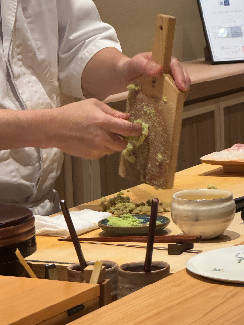 이렇게 고추냉이를 직접 갈아주시는데 이 고추냉이도 최고급이라고 합니다.