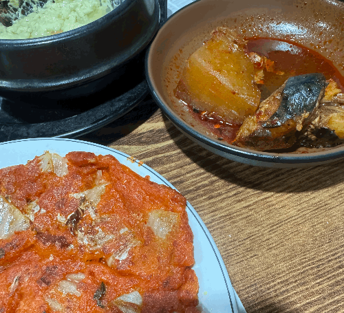 우선 나오는 서비스 안주로, 김치전과 고등어 조림, 그리고 계란찜이 나왔는데 새우가 나오기까지 조금 오래 걸려서 이렇게 미리 주시는구나 나중에서야 알게 되었습니다.