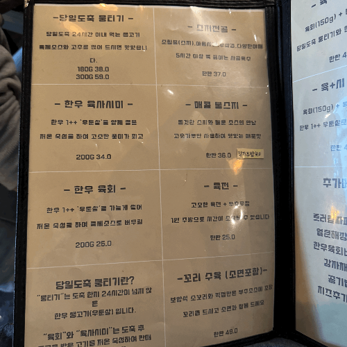 뭉티기는 도축한 지 24시간이 넘지 않은 한우 생고기 우둔살, 이라고 합니다. ㅋㅋ