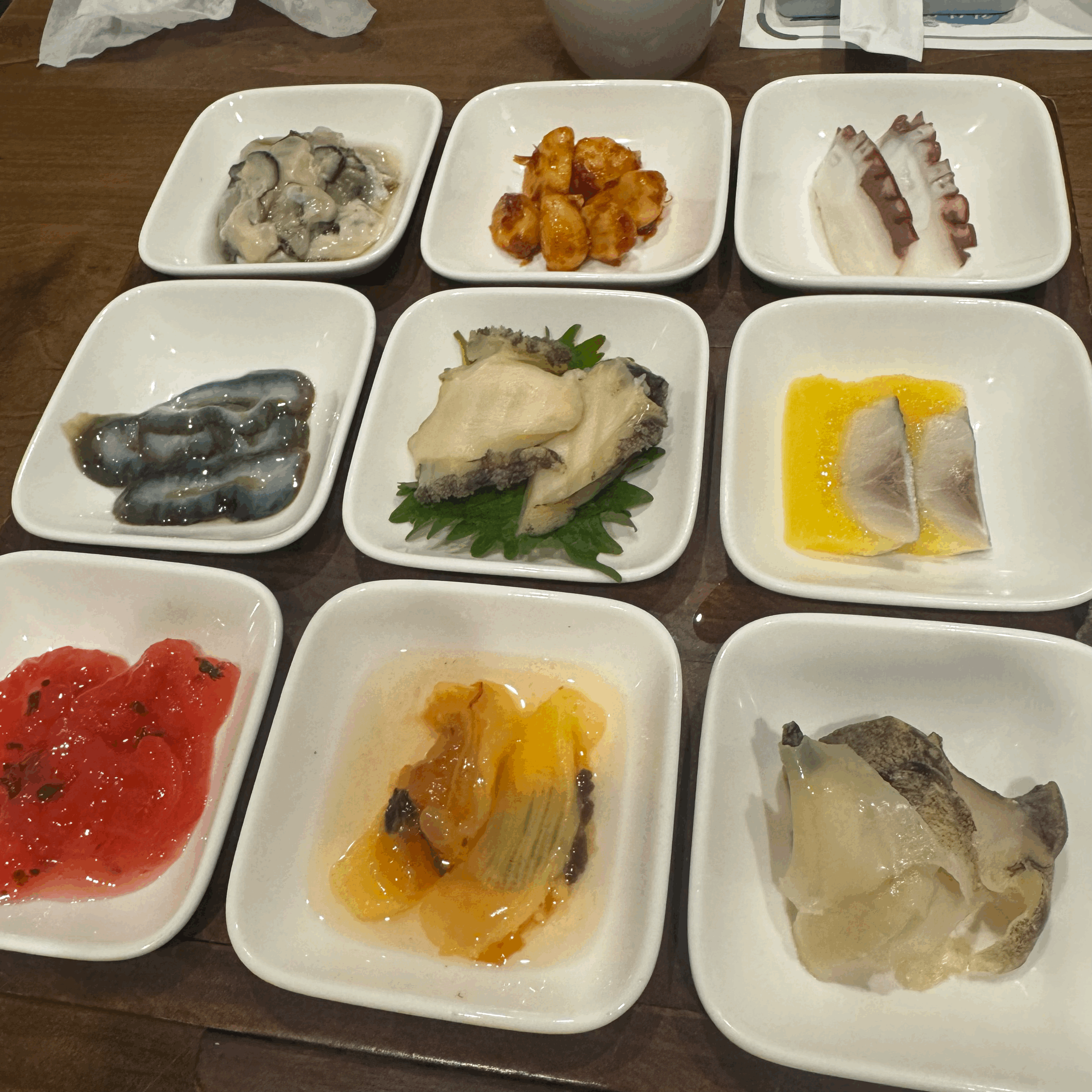 - 해산물 8종 - 멍게, 해삼, 굴, 피문어, 소라, 전복, 생선 ㅋㅋㅋ 등등