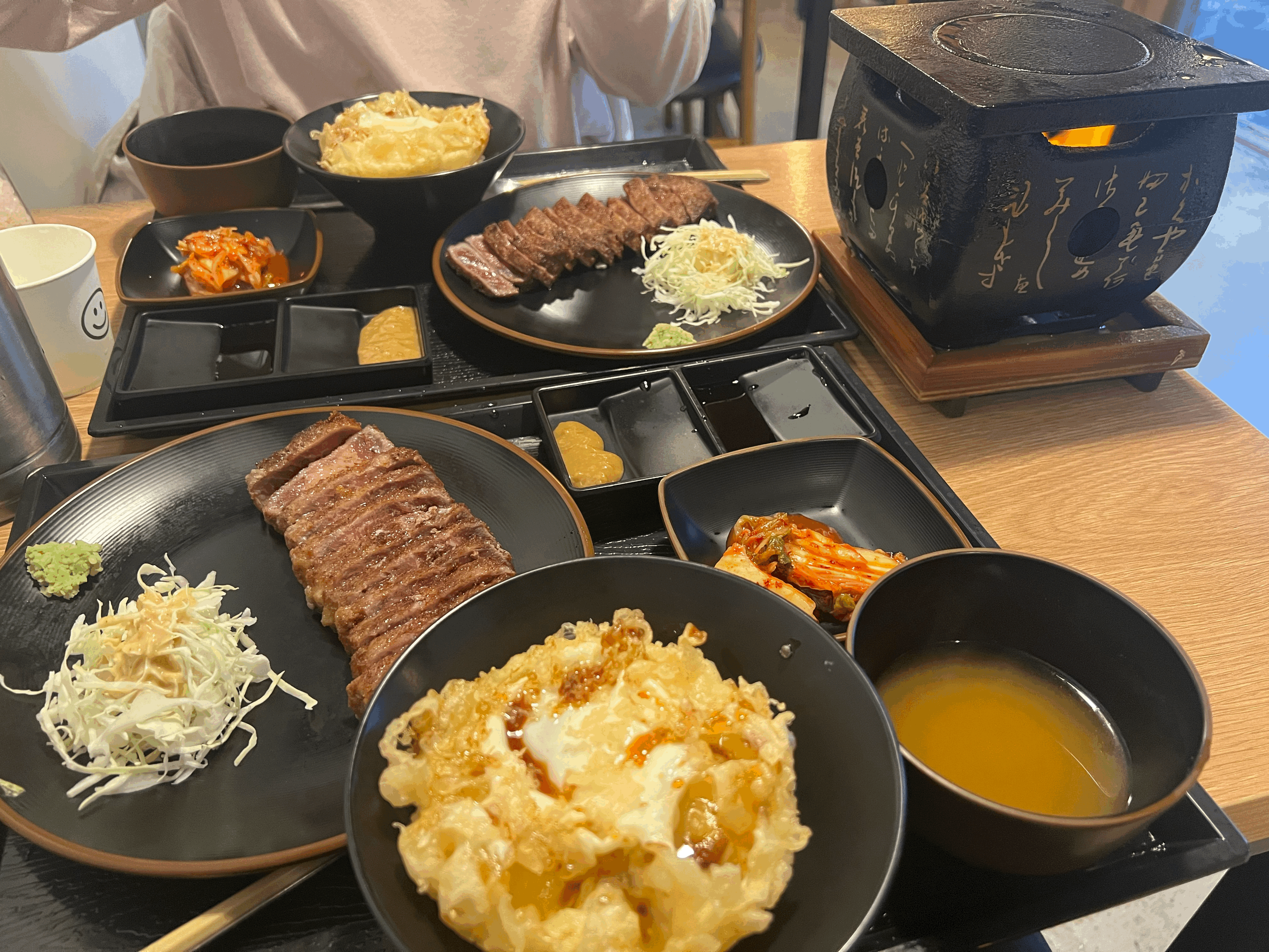 일본식 미니 화로에 소고기를 다뜻하게 구워 먹는 느낌은 항상 기분이 좋습니다.