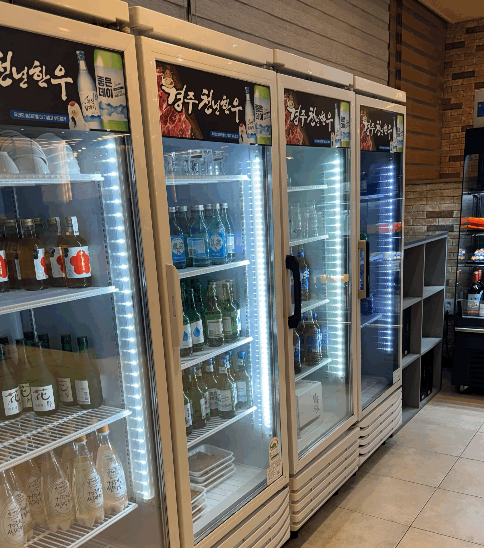 다행히도 5분정도 기다렸고, 바로 입장 안내를 받고 고기를 골랐습니다. 고기와 음료는 모두 한쪽 냉장고 쇼케이스 안에 준비되어 있어 고르기만 하면 됩니다. 정육식당 시스템입니다.